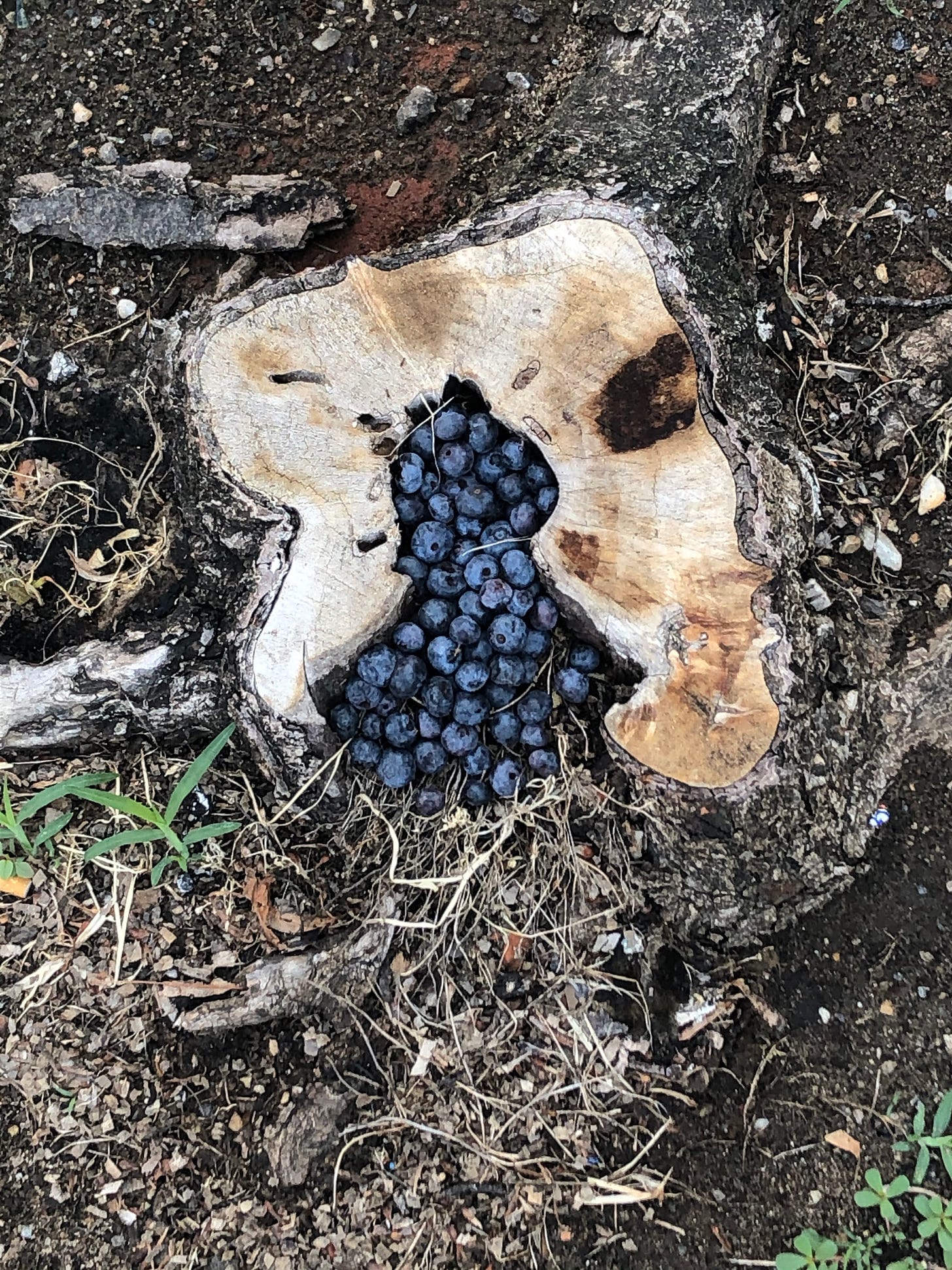 Someone wishes for abundance- for a sweet love- for guidance, so they walk to the farmer’s market and back and deposit blueberries in a bell-shaped hollow of a tree stump along Franklin Street
